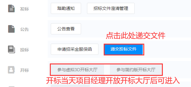 1、请至少提前1天进行投标操作:编制加密文件、递交文件等,避免因时间紧张或因网络原因等造成投标失败;